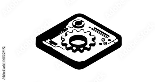 © Severino, Fototapeta premium Interface icon gear mechanism inside diamond shape circuit board vector illustration for engineering and technology design concepts vector