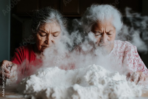 © Ryzhkov, Obraz premium Intergenerational Culinary Wellness Mindful Baking Ritual Showcasing Cultural Heritage, Sustainable Home Cooking and Sensory Artisan Experience