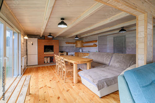 Naklejka premium interior apartment kitchen and dining room, refectory area, cooking...