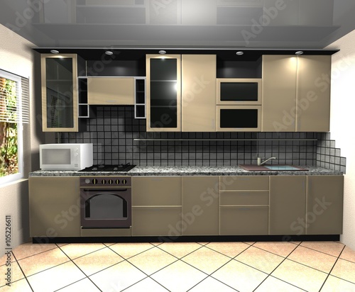 © zatelepina, Fototapeta premium interior design modern kitchen 3D rendering
