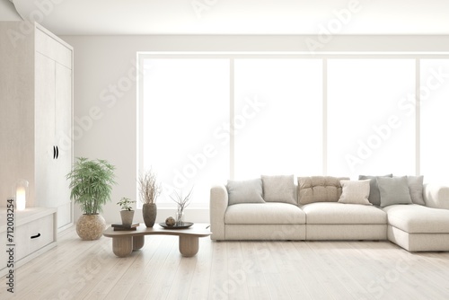 Fototapeta premium Interior design of modern apartment. Interior mockup. Scandinavian interior design. 3D illustration