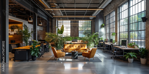 © AntonSh, Naklejka premium Interior design of modern office. Interior mockup. Generative AI