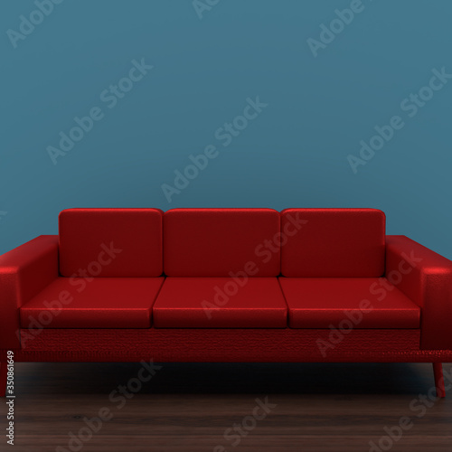 Obraz premium Interior Design Red Sofa Dark Oak Floor Blue Wall