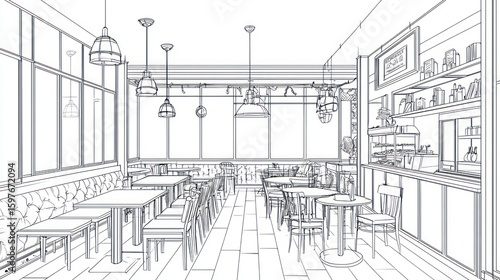 © anggun, Fototapeta premium Interior design sketch of a cafe or restaurant.
