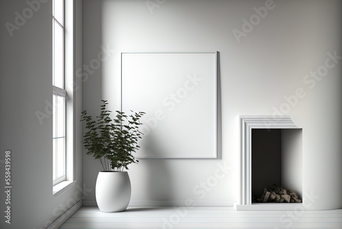 Obraz premium Interior is white and empty, with a fireplace, but no walls. mock up for an illustration. Generative AI