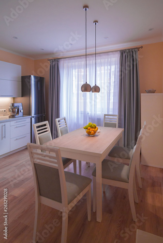 Fototapeta premium Interior. Kitchen modern, white, gray, beige color