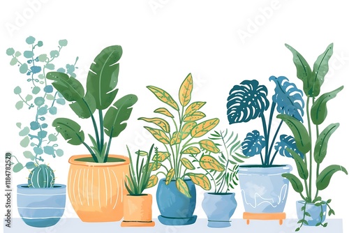 Obraz premium Interior living room with tropical plants in pots. 3D rendering