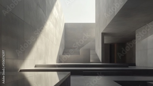 © minang, Obraz premium Interior modern concrete architectural space with natural light.