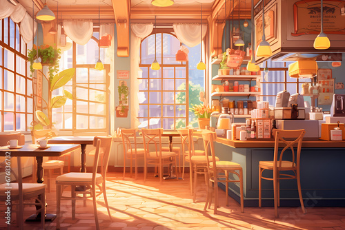 © Elena, Obraz premium Interior of a beautiful and cozy cafe