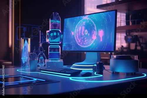Fototapeta premium Interior of a control room with computers and screens. 3D rendering