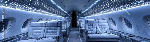 Fototapeta premium Interior of a modern airplane showcasing sleek seats and contemporary lighting.