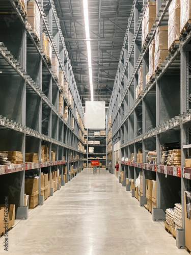 © Gatot, Obraz premium Interior of a Modern Warehouse Storage of Retail Shop.