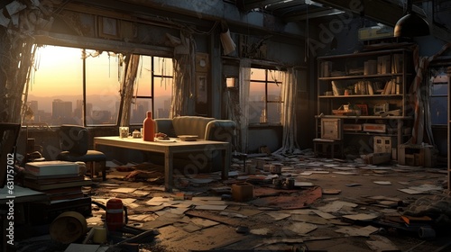 Obraz premium Interior of an old abandoned house. AI generated art illustration.