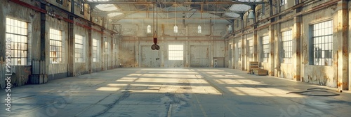 © The 2R Artificiality, Fototapeta premium Interior of an Unoccupied Storage Facility Featuring a Crane Hook