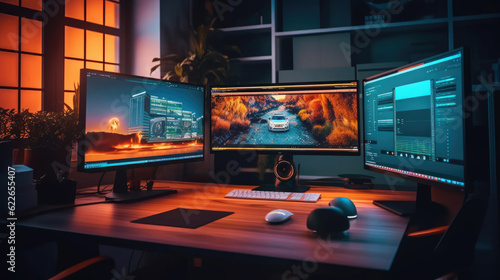 Fototapeta premium Interior of High-Tech Computer and Gaming room setup