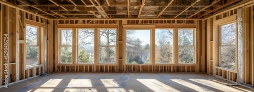 © tolem929, Obraz premium Interior of House Under Construction with Large Windows