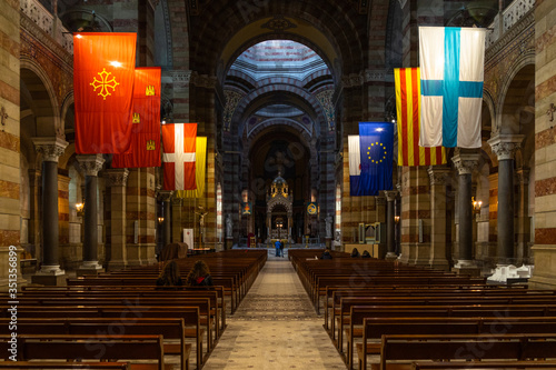 © Francesco Bonino, Fototapeta premium Interior of Marseille Cathedral (Cathedrale de la Major) built in 19th century in Byzantine-Roman Revival style, France