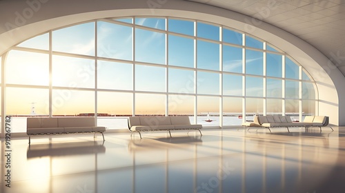 © Soul, Fototapeta premium interior of modern building. Waiting room in a modern airport, without people, white background