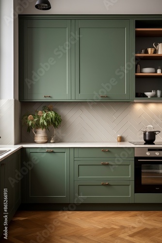 © Voilla, Fototapeta premium Interior of modern kitchen. Green color.