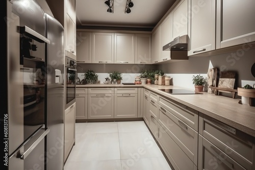 Fototapeta premium Interior of modern kitchen with appliances at home, generative AI