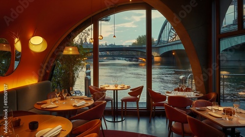 © Strahinja, Obraz premium interior of restaurant with beutiful view on river