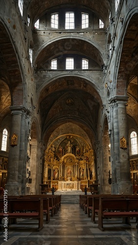 © claudunia, Fototapeta premium Interior of San Siro basilica from the 16th century.