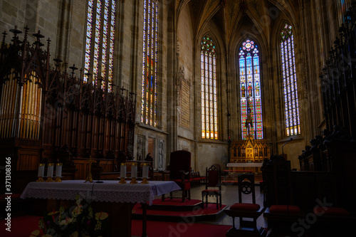 Fototapeta premium Interior of St Martin's Cathedral with its altar and stained glass windows. Bratislava, Slovakia. 2020/05/20.
