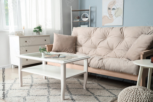 Obraz premium Interior of stylish living room with white sofa