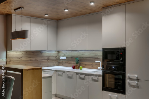 © flywish, Fototapeta premium Interior of the apartment in a contemporary style. Kitchen studio