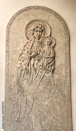 Fototapeta premium Interior of the branch church of St. John Paul II in the village of Dyrdy, the parish of Kalety Miotek in Poland.
