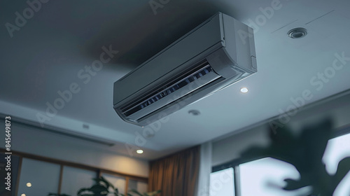 © Jirawatfoto, Obraz premium Interior room with ceiling mounted cassette type air conditioner