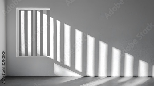 © Biggy, Obraz premium Interior shadows from a barred window on a white wall