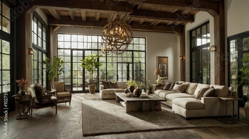Fototapeta premium interior space with a high ceiling and exposed wooden beams