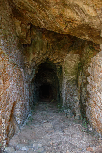 Fototapeta premium Interior Tunnel of Ancient Marble Quarry, Marathi, Paros Island, Greece