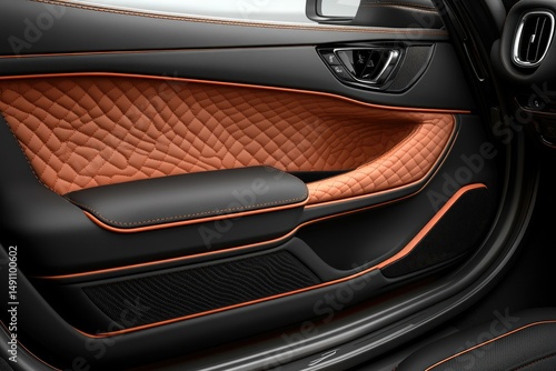 © NikahGeh, Obraz premium Interior view of a vehicle's quilted door panel.