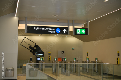 © eugen, Fototapeta premium interior view of an Eglinton Line 5 station featuring entry gates and Presto vending machines, Toronto