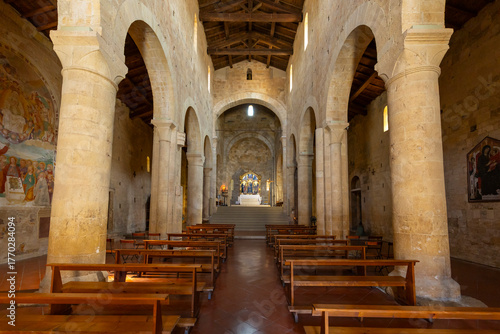 Obraz premium Interior view of the Badia a Isola church in Monteriggioni, Tuscany