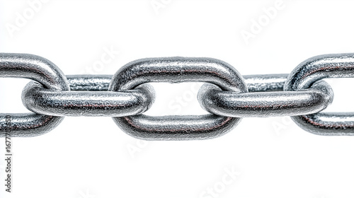 © Ramses, Obraz premium Interlocked silver metal chain links forming a strong, continuous connection, shown isolated on a clean white background with sharp detail and reflective texture.