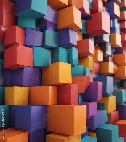 © Omsin, Obraz premium Interlocking geometric forms, bold color blocks, social, digital world
