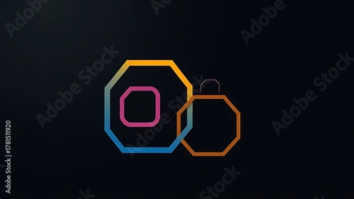 © Jhon, Fototapeta premium Interlocking geometric shapes on a dark background for business strategy.