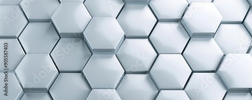 © WinThing, Naklejka premium Interlocking hexagonal patterns with reflective surfaces, 3D abstract, high-tech and sleek