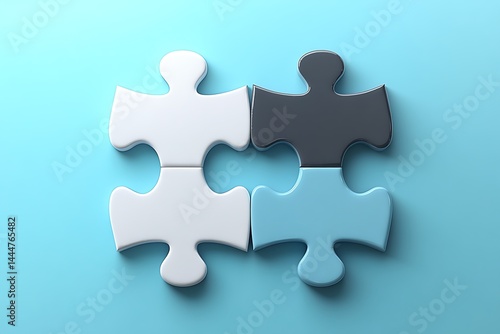 Obraz premium Interlocking puzzle pieces on blue background representing teamwork and...