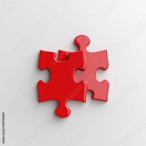 Obraz premium Interlocking Red Jigsaw Pieces on White Background Puzzle Concept
