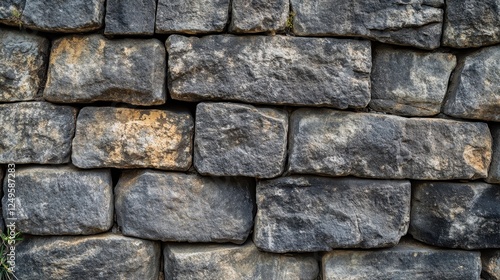 © NpicArt, Fototapeta premium Interlocking stone blocks form a textured wall pattern