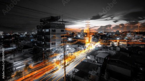 © jobim, Obraz premium Intermittent wi-fi has resulted in only the lower part of the AI landscape being colored, real. with wi-fi icon.