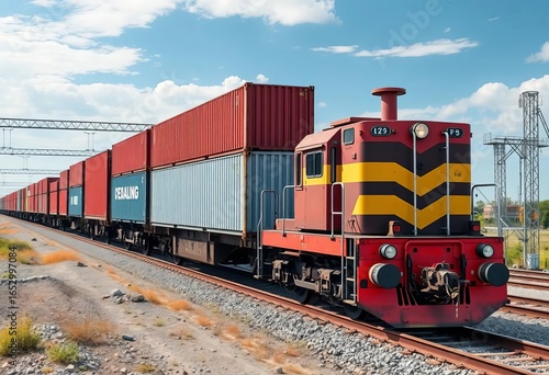 Fototapeta premium Intermodal freight train transporting cargo containers, intermodal transportation, supply chain