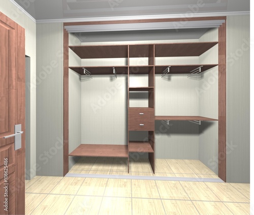 © zatelepina, Fototapeta premium internal filling wardrobe with sliding doors 3D render