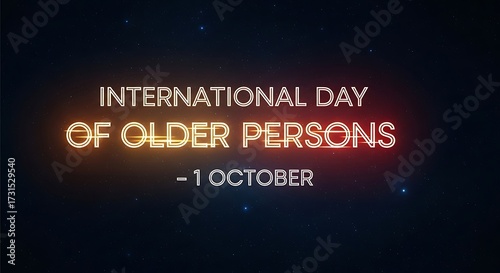 © shorife, Obraz premium International day of older persons glowing text on dark background