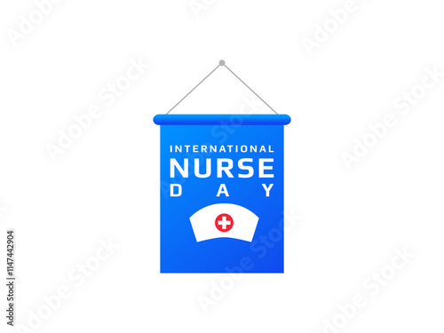 Fototapeta premium international nurse day text with nurse cap hanging banner
