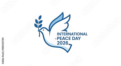 Obraz premium International Peace Day 2026 Dove with Olive Branch on Clean White Background